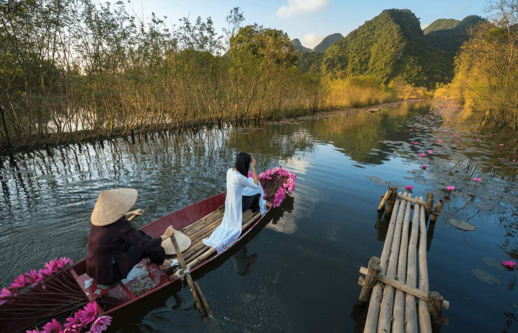 One of the most serene experiences at Perfume Pagoda is the boat trip along Yen Stream. The slow, peaceful journey allows visitors to take in the picturesque landscape, with reflections of mountains and trees shimmering on the water’s surface.